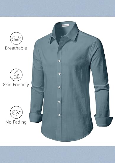 - 【Fabric】This men’s long-sleeve linen shirts is made from a cotton-linen blend, offering you a comfortable, cool, and breathable wearing experience at all times. This casual linen shirt keeps you fresh and comfortable even on the hottest summer days, making it the perfect choice for your summer wardrobe.